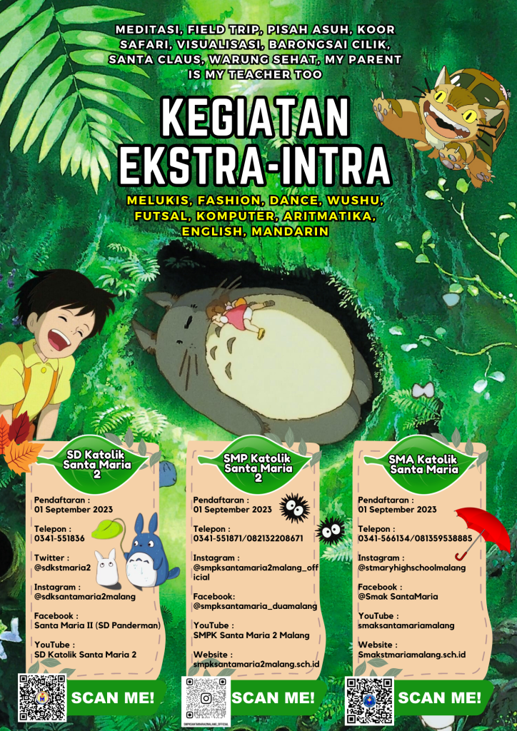 Saya bangga bisa bersekolah di TK Santa Maria 2 Malang, semua guru mengajar dengan ramah dan sabar. Saya masih ingat sewaktu bermain bersama teman2 di halaman sekolah bersama teman2, sangat menyenangkan. Saya berharap sekolah ini dapat mempertahankan nama besar & cara pembelajaran yang diberikan ini. Sehingga memudahkan para murid untuk belajar dengan baik dan bermain dengan aman.